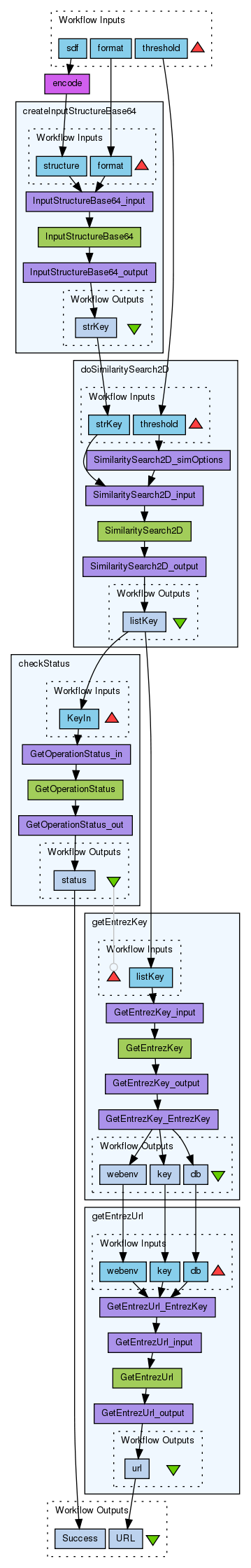 Performs a 2D structure similarity search on PubChem. The input structure has to be in the form of a SDF file. The original SDF-based similarity search workflow was written by the PubChem team @ NCBI (http://pubchem.ncbi.nlm.nih.gov/).