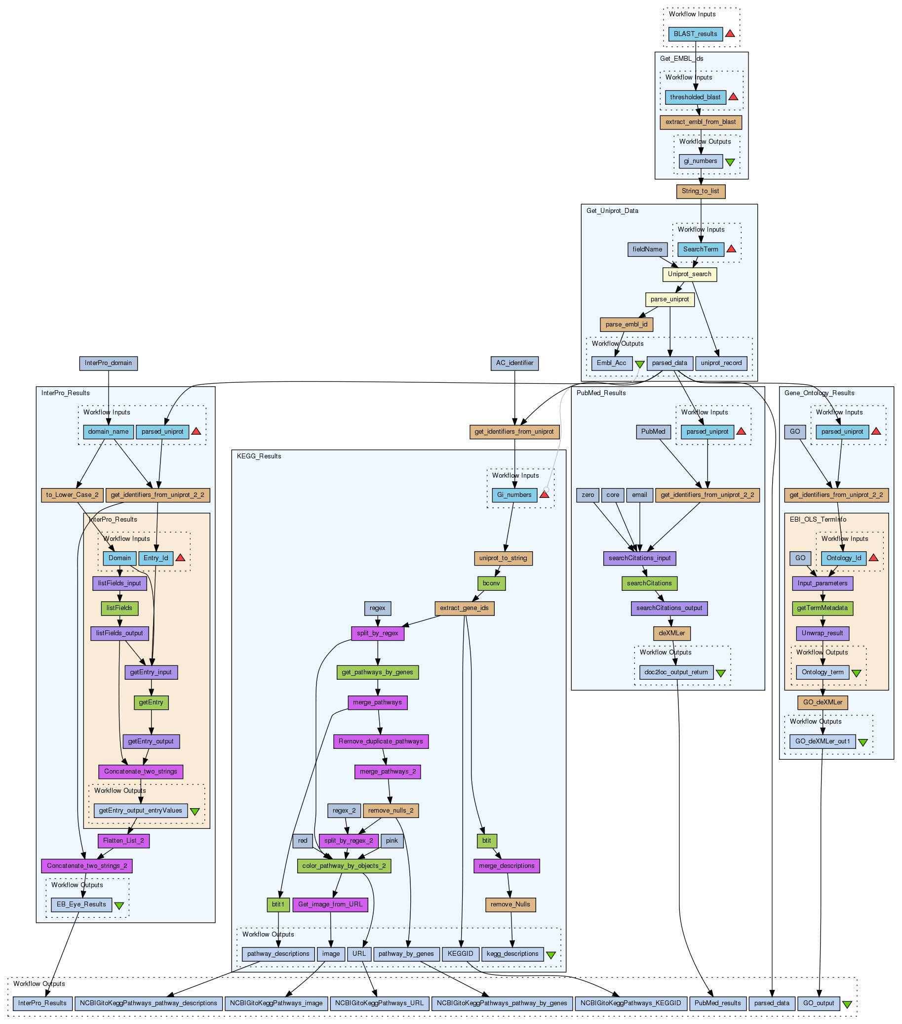 Takes in a tab-delimited BLAST file and finds additional information about the target proteins from KEGG, Gene Ontology, Interpro and PubMed.