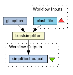 This workflow simplifies a BLAST text file into identifiers, descriptions and values (P, E-values). In order to extract the relevant ids etc. you need to pass the relevant string into the corresponding port, e.g. the default port being used is gi. This has been passed "gi". For any other ports simply pass in the string the SAME as the port name, e.g. seq_id, p, per etc.