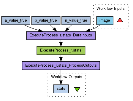 r.stats operation for image. Output will group pixels by: DN, total area, relative %. This worflow is used inside the ice Class exampel as a nested workflow