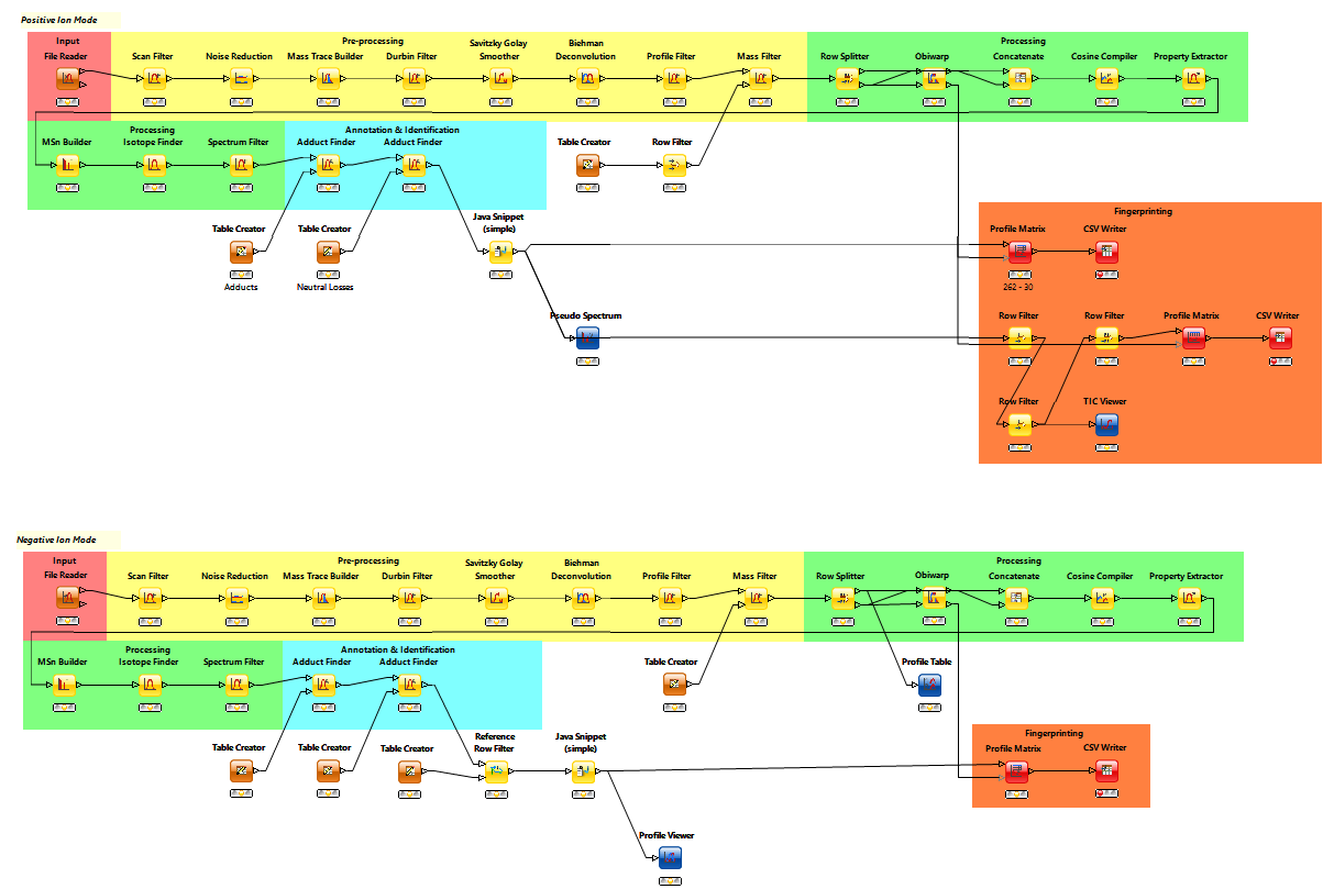 Updated data processing workflow for metabolomics LC-MS/MS data. This workflow depends on the stable community plug-in MassCascade and KNIME plug-ins Base Chemistry, Chemistry Types & Nodes, Math Expression, and XLS Support. The workflow was run under KNIME version 2.9.2.