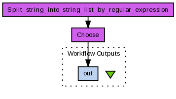 The split_string_into_string_list_by_regular_expression parses the string 'a' and outputs the list ['a'].