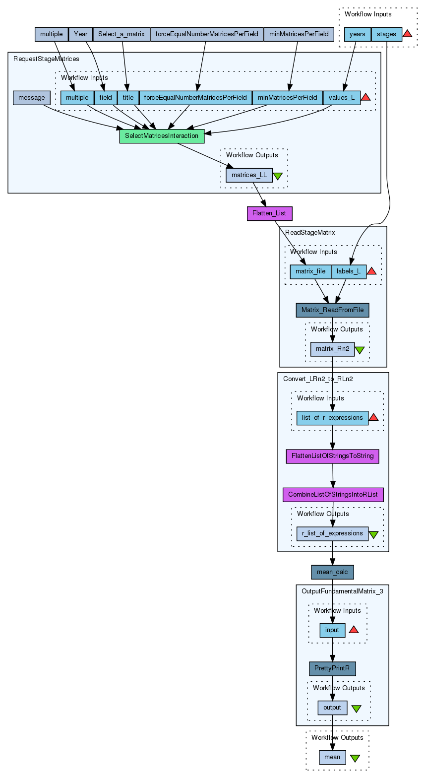 This mean matrix workflow estimates the mean matrix from a list of matrices.