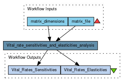 This workflow calculates the Elasticity and Sensitivity of population growth rate with respect to various vital rates. The goal in both cases is to determine which vital rates has/ve the most influence on population growth rate (?).