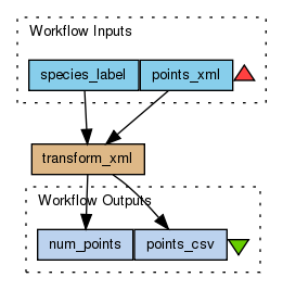 Converts points in openModeller XML format into CSV format (header: occurrenceID,nameComplete,decimalLongitude,decimalLatitude). Most input/output ports related with presence or absence points expect/return data in openModeller XML format. This component can be used to simply convert such data back to a more human friendly format.
