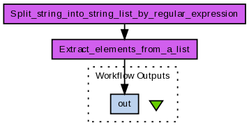 The extract_elements_from_a_list is passed the list ['a','b','c','d','e']. The fromIndex is 2 and the toIndex is 3, so the service outputs the single element list ['c'].