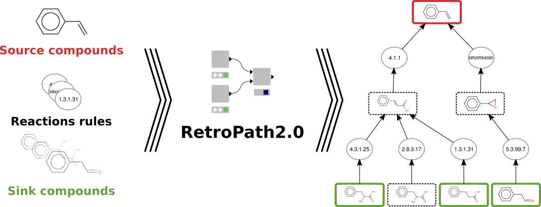 Delépine B, Duigou T, Carbonell P, Faulon JL. RetroPath2.0: A retrosynthesis workflow for metabolic engineers. Metabolic Engineering (2018). DOI: https://doi.org/10.1016/j.ymben.2017.12.002