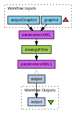 This workflow filters an Ondex graph, by cleaning up any GO terms within the Graph (?). The result is a new Ondex graph. The parameters that can be used with this service are as follows: