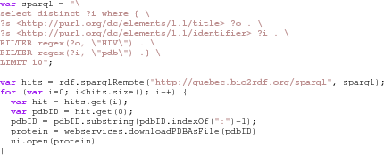 Open PDB entries in Jmol for hits found for HIV in Bio2RDF
