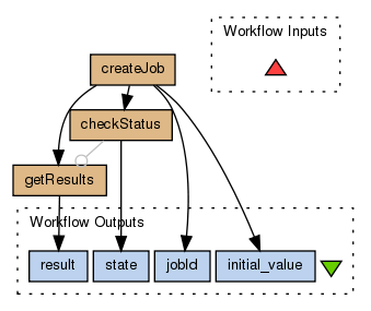 Thus when executing this workflow, checkStatus will be called repeatedly, and finally the 'result' should be '10' and 'state' should be 'COMPLETE'. |