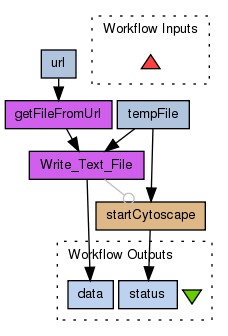 This workflow retrieves a data file on a web server directory and launches Cytoscape to visualise it.