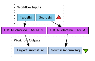 Retrieves the genome seqn for both the target and source strains using gi nos