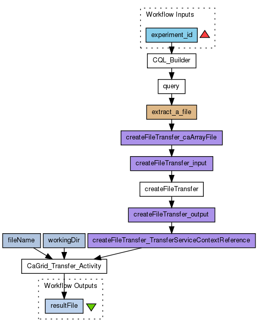 CQL_Builder provides a GUI to build a complex CQL clause querying caArray files. CaGrid_Transfer_Activity downloads files to a local directory using caGrid transfer utility.<o:p></o:p>