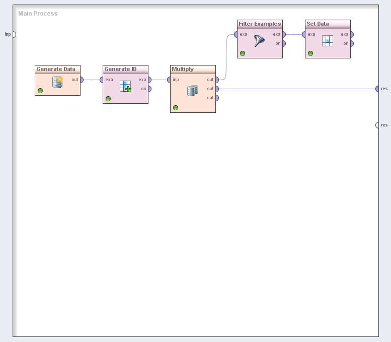 This process will first generate an artificial dataset and tag it with ids. Then a Filter Examples Operator is used to get a dataset with exactly one example identified by it's id. Then a value is set in this example.