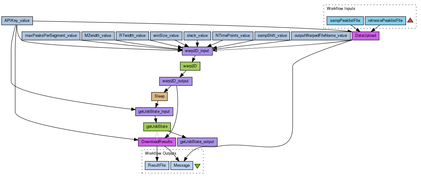 Warp2D is an efficient, fundamentally new approach to correct for non linear retention time shifts between complex proteomics and metabolomics LC-MS data sets. Warp2D operates on peak lists and use the integral of overlapping peak volume of the reference and sample chromatograms in benefit function with Correlation Optimized Warping algorithm.