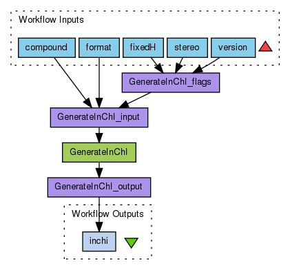 Generates an inChi string for a given chemical represented by its SMILES string, SDF or MOL file using the inchi web service provided by ChemSpider