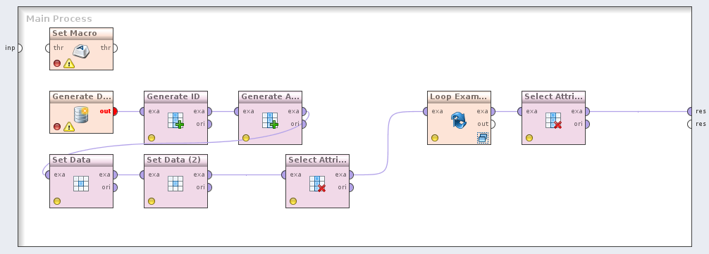 The n-th Fibonacci number is F(n)=F(n-1)+F(n-2), and F(0)=0, F(1)=1. Create a process that creates an example set with F(n) rows where n can be defined as a macro of the process.