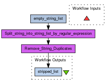The remove duplicate strings service takes the empty list [] and outputs the result [].