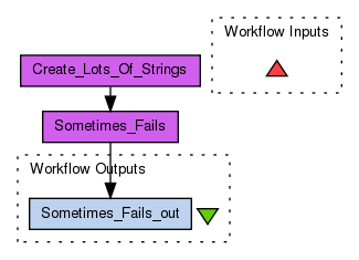 This workflow executes a local beanshell script that has been programmed to fail on some iterations.