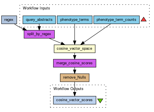 This workflow calculates the cosine vector space between two sets of corpora. The workflow then removes any null values from the output. this is some extra text vbeing added |