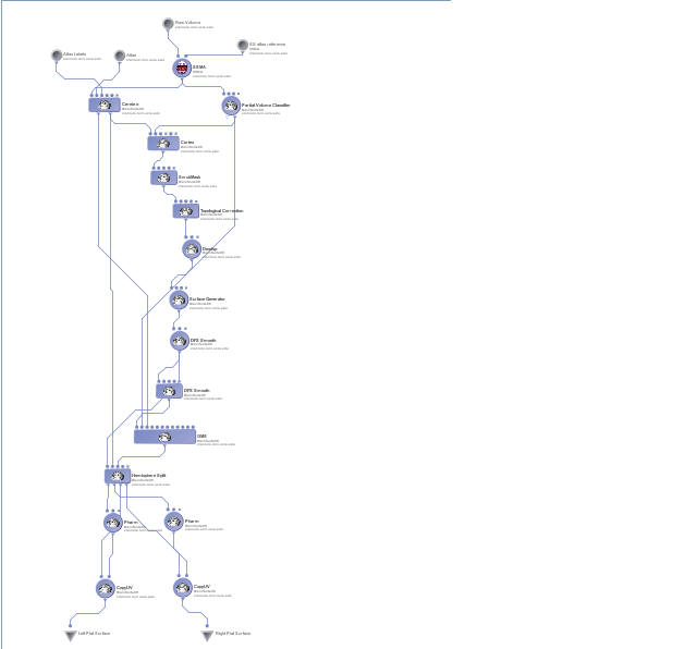 The workflow takes a skull stripped volume as input and runs a multi-stage process, extracting the cortical surface and splitting it into hemispheres.