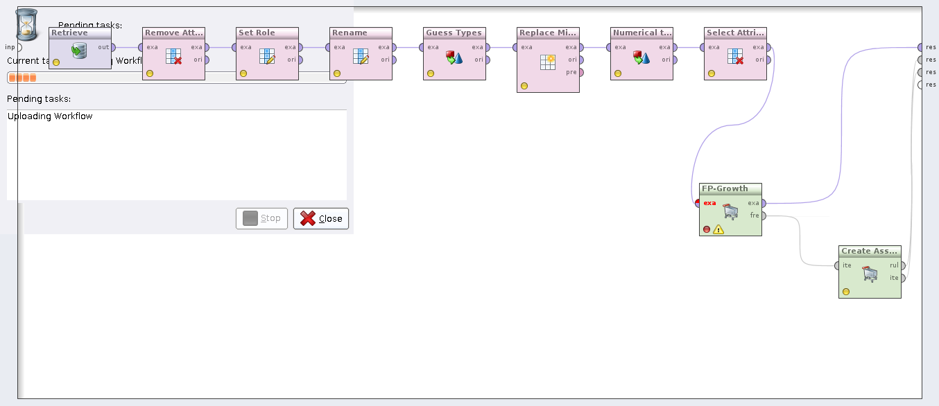 Based on the frequent itemset this WF also generates association rules which have some itemset in a premise and some in the conclusion. The quality of a rule is given by its confidence.
