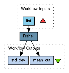 This workflow is a simple example of how to input a list of numeric values and perform some ultra-basic calculations using Rserve. The output is two separate numbers, the mean and standard deviation of the list of input values.