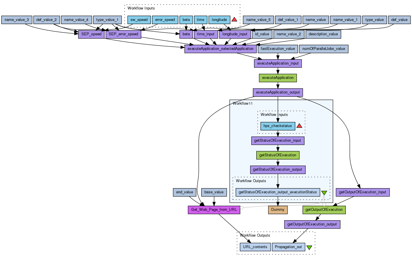 This workflow uses flares listed in any HELIO HEC flare catalogue (using the semantic mapping service), checks whether these flares are connected to Earth via the Parker spiral, and looks for proton events at earth listed in the goes_proton_event list. The flare listing and the proton listing are combinded into a list of VOTable outputs (one VOTable per flare catalogue with results).