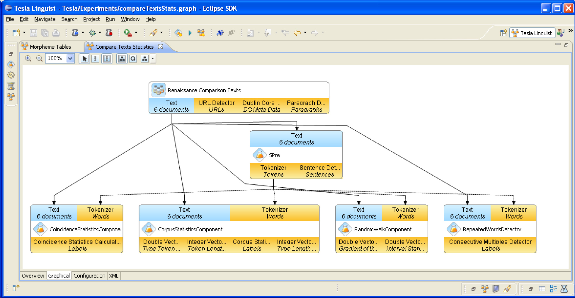 Calculation of some basic parameters of renaissance texts written in different languages.