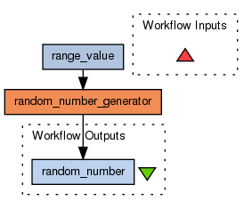This workflow generates a random number within the range 0 to 100. The generation is done by a python script.