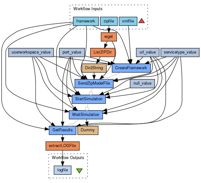 Create and execute a simulation on the RISE server. This workflow take 3 inputs: the XML to configure the RISE framework, the URL of the ZIP file model (a zipped directory containing the model files), and the new framework name.