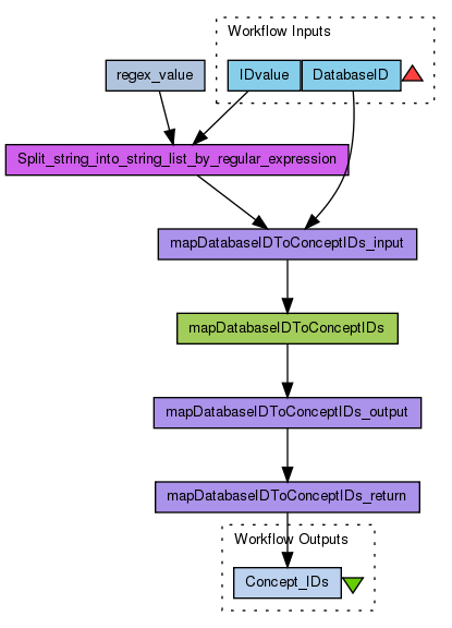 This workflow maps input Identifiers, common database identifiers, to the Concept Identifiers from the EMC ontology.