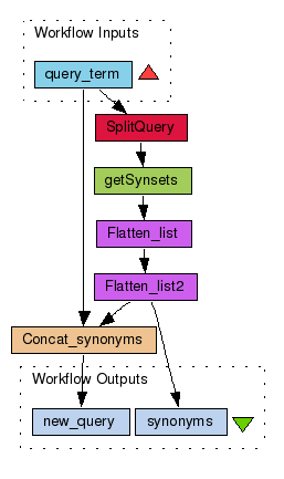 This workflow creates a query string from the query term using Martijn Schuemie's synonym service. The service is limited to proteins, enzymes and genes. An input query that is a boolean string will be split and processed, but the boolean logic of the input query will be lost.
