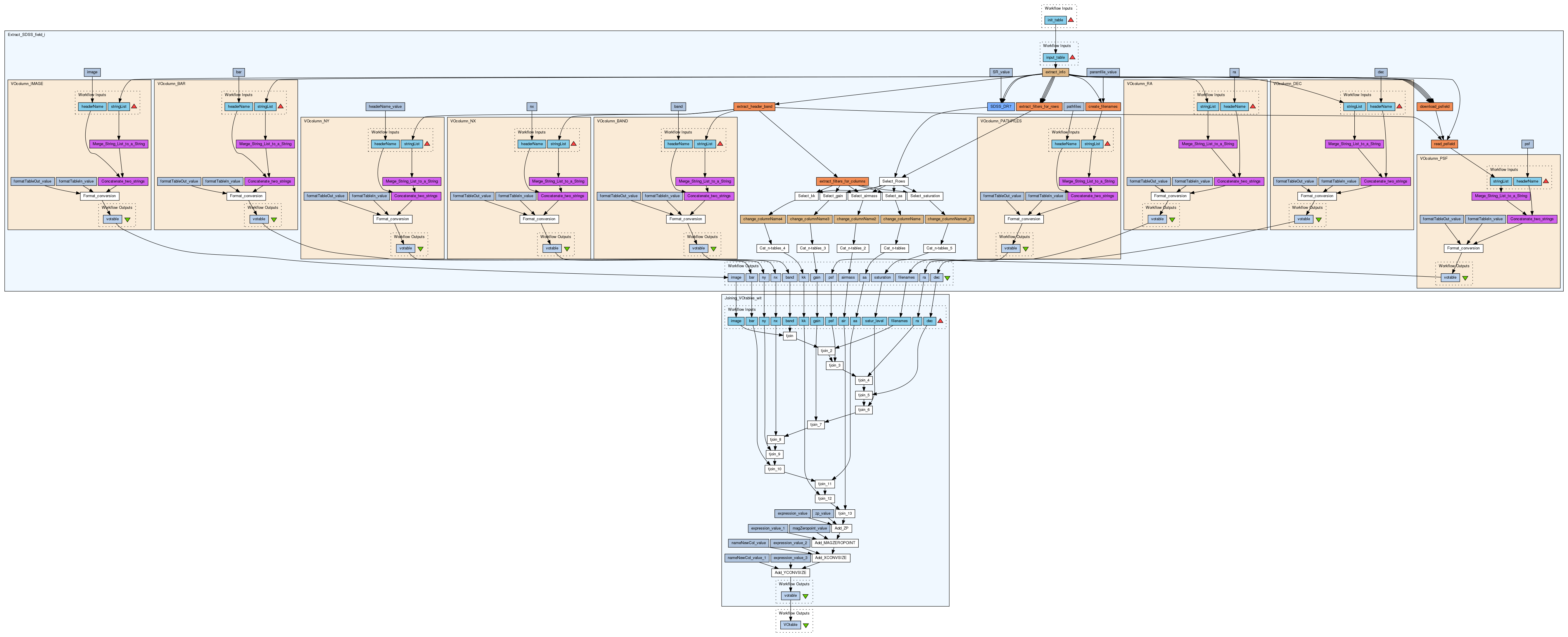 - Joining VOtables with information to execute Sextractor, Galfit and Ellipse, which joins the VOtables generated by the previus workflow to get only one VOtable with all the information