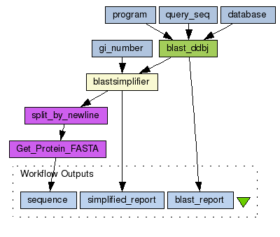 This workflow Performs a blastp search on protein sequence, extracts sequence id within the blast report and retrives the corresponding seuqences.