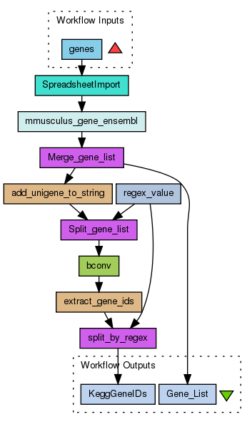 This workflow extracts a column of RefSeq gene IDs from a CSV file and then converts them to Kegg gene identifiers |