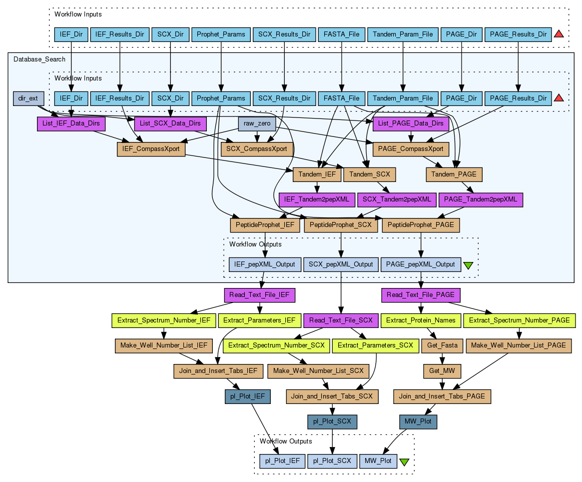 Executing the workflow requires Rserve running and the Trans-Proteomic Pipeline (http://tools.proteomecenter.org/wiki/index.php?title=Software:TPP) installed with default settings and in the default location. The Rshell script contains the location where the figures will be generated. All other output files are stored in the input data folders by default. The version of X!Tandem called from this workflow is separate from the one installed with the Trans-Proteomic Pipeline (the location specified in the Tandem components).