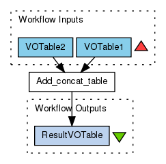 Snippet showing how to use AstroTaverna tool for concatenating two VOTables. The input is two VOTables with the same number of columns. The result if using sample values provided will be a vertically duplicated VOTable.