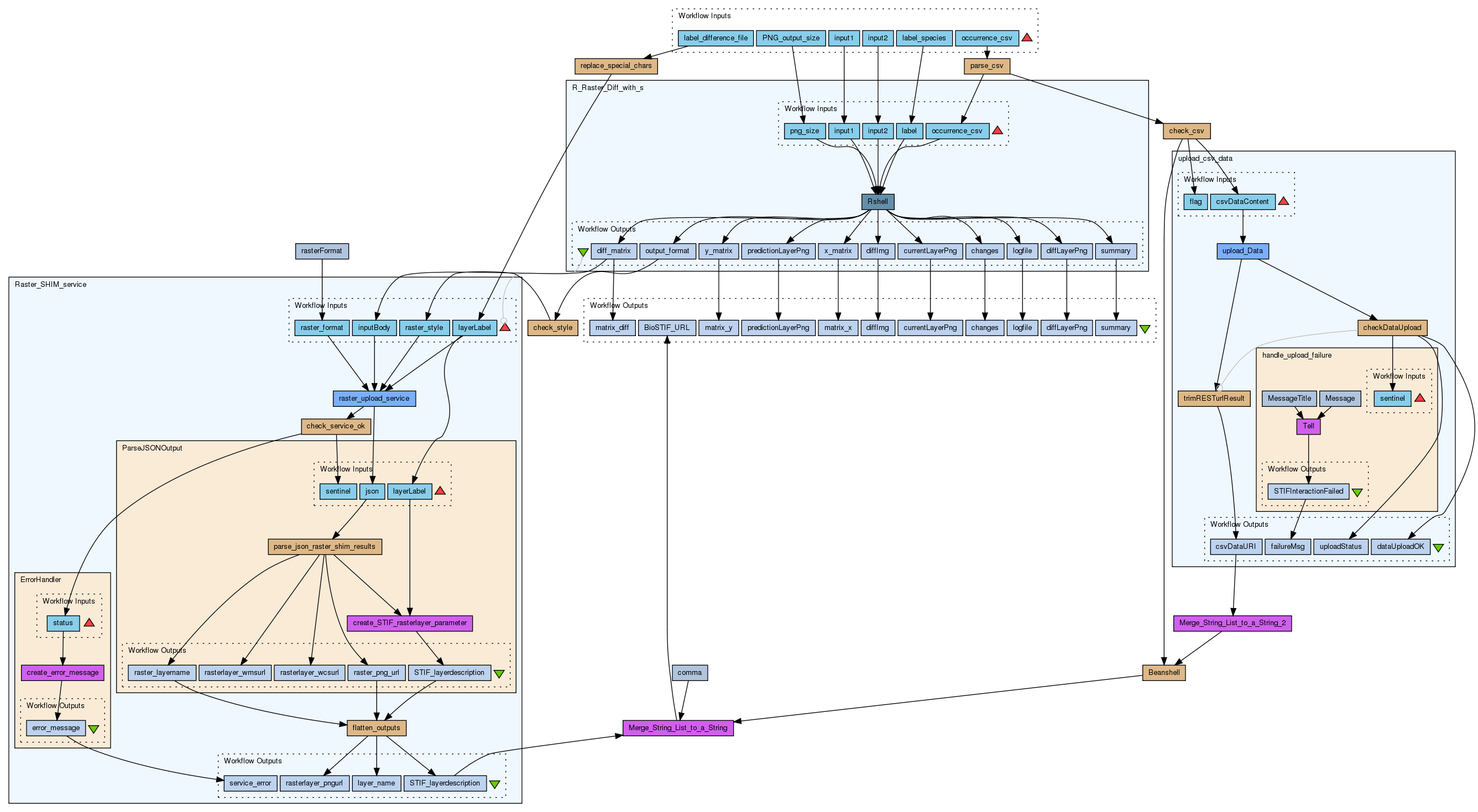 Expected as input files are those raster images as a URL reference e.g. output files from openModeller created by an ENM workflow. *A file upload into the workflow is not possible, only a reference to the input file as URL*
