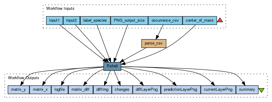 Expected as input files are those raster images as a URL reference e.g. output files from openModeller created by an ENM workflow. *A file upload into the workflow is not possible, only a reference to the input file as URL*