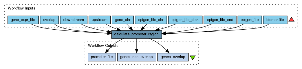 This workflow computes a promoter region for each gene that we provide as input