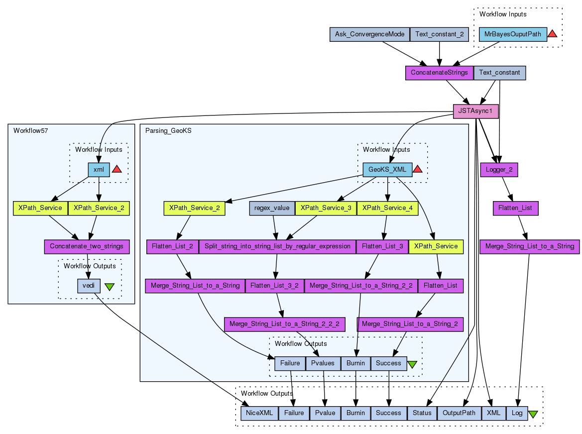The mcmc integration is a numeric approximation of the true integral. The quality of the approximation need to be verified before to use the results. A basic procedure is to compare several runs and verify that the same results are found. The difficulties in phylogenetic inference is that the main results is a distribution of tree that are object difficult to represent as a distribution or to apply simple scalar metrics. This workflow use GeoKS t software that is based on Billera tree space representation. |
