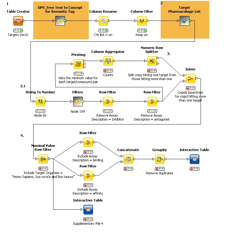 Workflow used to obtain data for the research paper ‘The application of the Open Pharmacological Concepts Triple Store (Open PHACTS) to support Drug Discovery Research’, currently submitted to PLOS ONE.