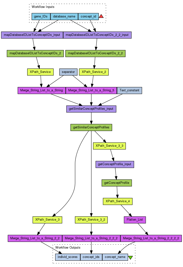 This workflow prioritizes a gene list according to its association with the 'concept_id'. In our example here we are prioritizing a gene list to obtain genes that are more closely associated to huntingtin, the cause of huntington's disease