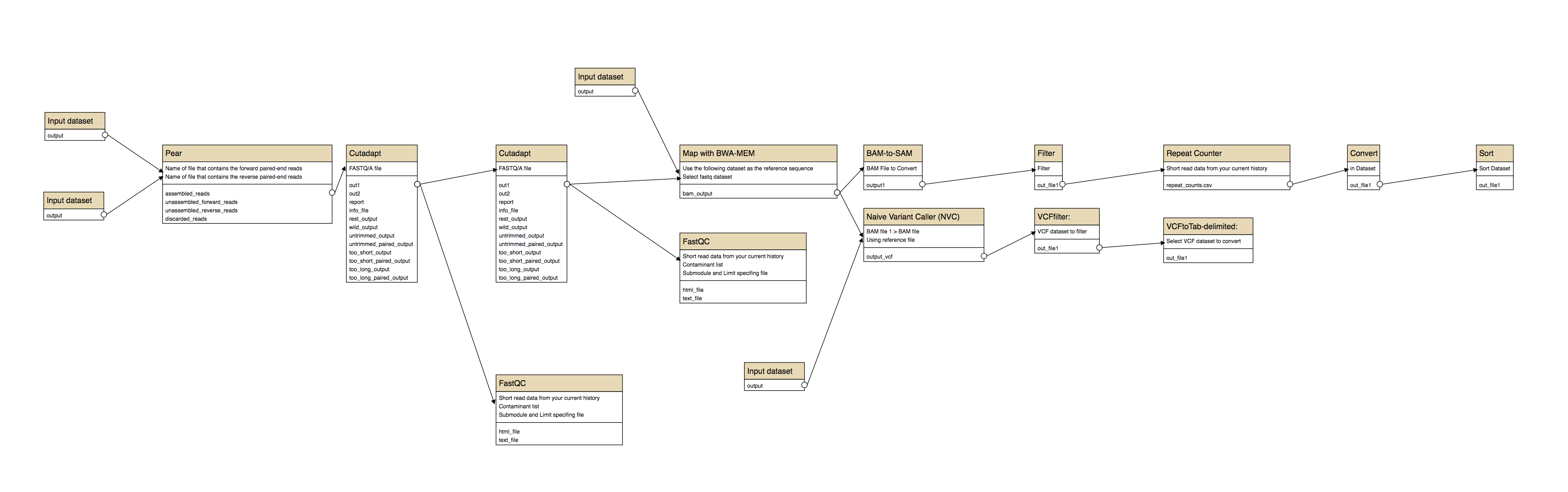 Mapped .bam files are converted to .sam format using BAM-to-SAM which are then filtered against multiple alignments (‘c5 > 0’) using Filter tool to obtain only unique alignments. Repeat counter is used to determine the reference sequences with highest numbers of aligned reads, i.e. determine the repeat genotypes.