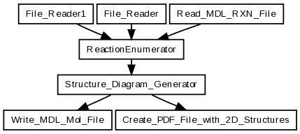 This workflow performs a reaction enumeration. Therefore it loads a generic reaction rxn file and two educt lists. This SD-Files contains molecules for the enumeration. The products of the enumerated reaction are stored as Mol Files and a PDF will be created which contains the product molecules.
