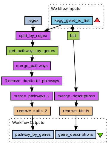 This workflow gets a series of information relating to a list of KEGG genes supplied to it. It also removes any null values from a list of strings.