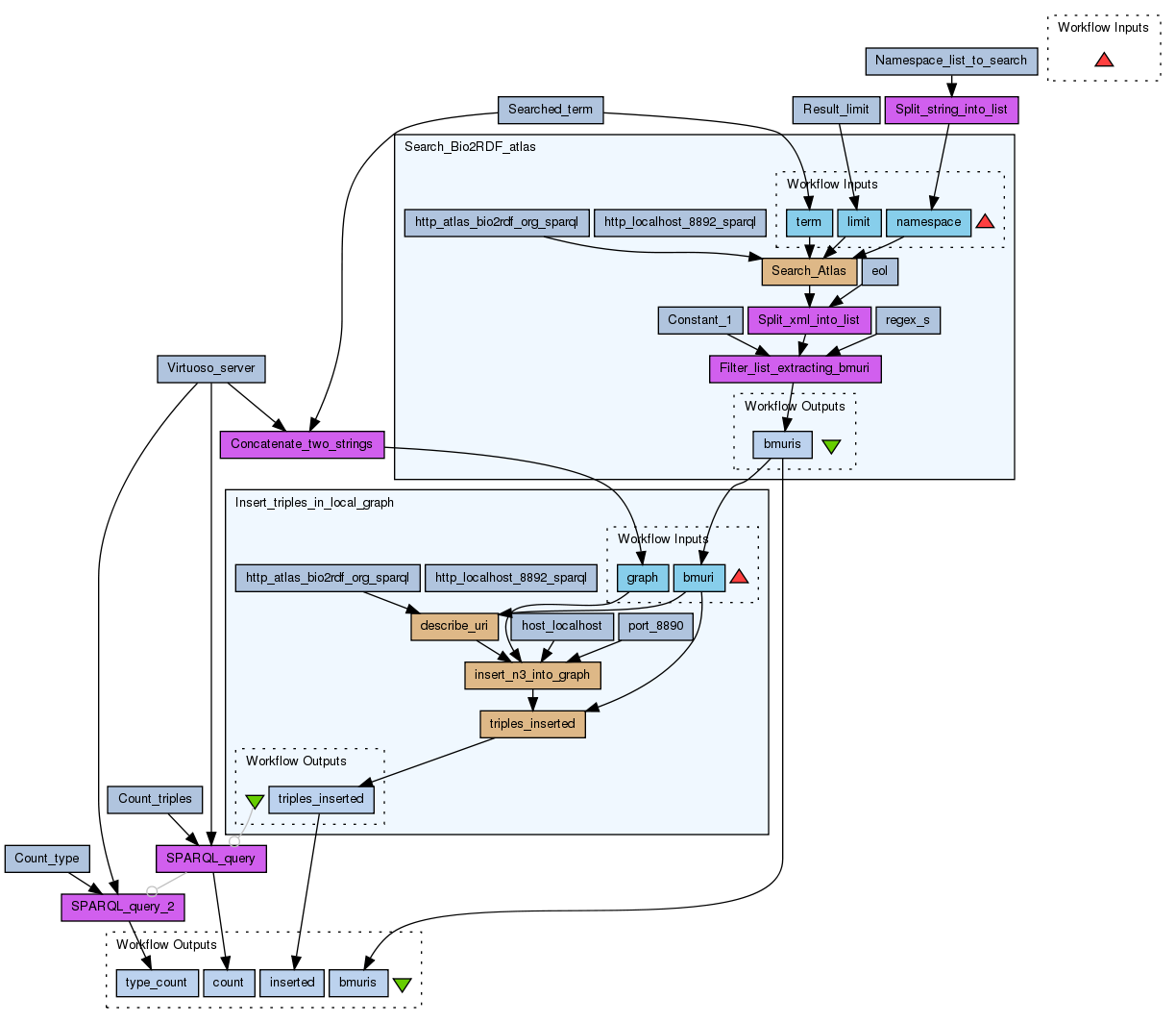 I have download your workflow and tried to run it using Taverna 2.0. However, no results were ever returned to me. I digged into the workflow and found that the value given to the string processor "virtuoso_server" is http://localhost:8890. Is this the reason why I got no results back? What should I fix to make the workflow run on my local desktop?