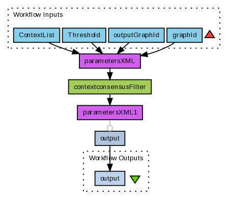 This workflow filters a given Ondex graph according to a consensus with regards to a specific context (concept list). The result is a new Ondex graph. The parameters that can be used with this service are as follows: