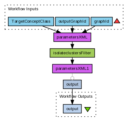 This workflow filters a given Ondex graph, isolating clusters within the graph and returning only those clusters as a new graph. The parameters that can be used with this service are as follows: